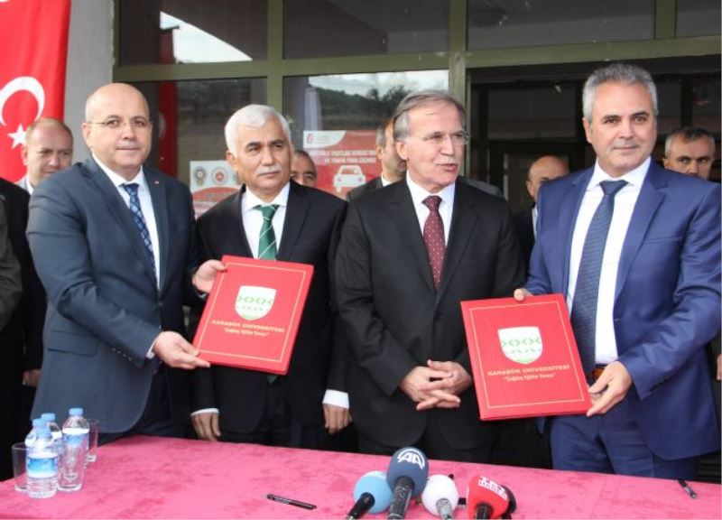 İmza töreni öncesi okulun yapımını üstlenen Karabük Ticaret ve Sanayi Odası Başkanı Sedat Namal, “Sosyal Sorumluluk projesi kapsamında güzel şeyler yapmaya gayret ettiklerini belirterek şunları söyledi: 'Cenab-ı Allah’ın rızık aracıyız. İşi kullanırsak bereketi artar. Bugün burada Meslek Yüksek Okulu protokolünün imzalanmasında Şahin’in ve Rektörümüzün emekleri var. Kendilerine teşekkür ediyoruz. Bir yıl önce bir zat için gülmesi için dünyaları veririz diye söylemişlerdi. Biz de Mehmet Ali Şahin için dünyaları veririz” dedi.