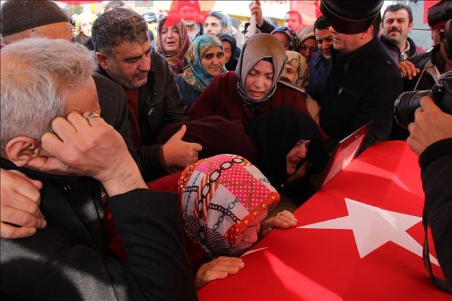 Tabutun başına gelen şehitin annesi Zehra Aytekin, “Oğlumun kokusu geliyor. Ne güzeldi gözlerin. Niye bakıyorsun oğlum öyle niye? Oğlumun gözleri kızarmış” diyerek oğlunun tabuttaki fotoğrafını öptü.