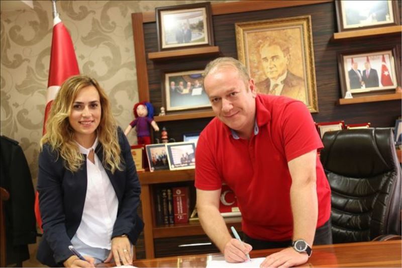 Karabük TSO Yönetim Kurulu Başkanı Tuncay Özcan ile Özel Hatem Okulu Müdürü Fatma Ergin daha sonra eğitim işbirliği protokole imza attı.