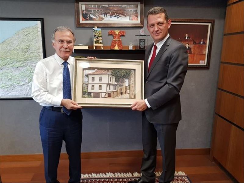 Safranbolu´nun genel sorunları ve ihtiyaçlarını Milletvekili Şahin´e aktaran Ürkmezer, ayrıca Safranbolu evi konseptli kağıt rölyef tasarımından bir tablo hediye etti.