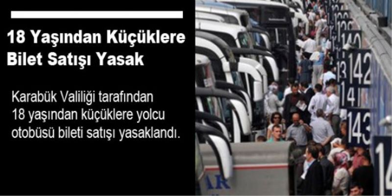 Karabük Valiliği, 18 yaşından küçüklere, ailesinin ve kurumun bilgisi dışında evden ve yurtlardan kaçan, kayıp olan çocuk ve gençlerin başlarına gelebilecek olaylar nedeniyle yolcu otobüsü bileti satışını yasakladı. Karabük Valiliğinden yapılan açıklamada, 'İlimizde, ailesinin ve kurumun bilgisi dışında evden ve yurtlardan kaçan, kayıp olan çocuk ve gençlerin başlarına gelebilecek ve ileride yaşamlarını olumsuz yönde etkileyecek olayların engellenmesi, ailelerdeki kayıp çocuk infialinin yaşanmasının engellenmesi amacıyla İlimiz sınırları içerisinde bulunan şehirlerarası otobüs terminallerinde ve demiryolu istasyonlarında, bunların acentelerinde ve bilet satış yerlerinde, on sekiz (18) yaşından küçüklere bilet satışı yapılmaması önem taşımaktadır. 2014/2 sayılı Valilik Genel Emrinde açıklanan kararın uygulanmasında kusuru bulunan kişi veya kişiler hakkında idari yaptırım uygulanacaktır' denildi.