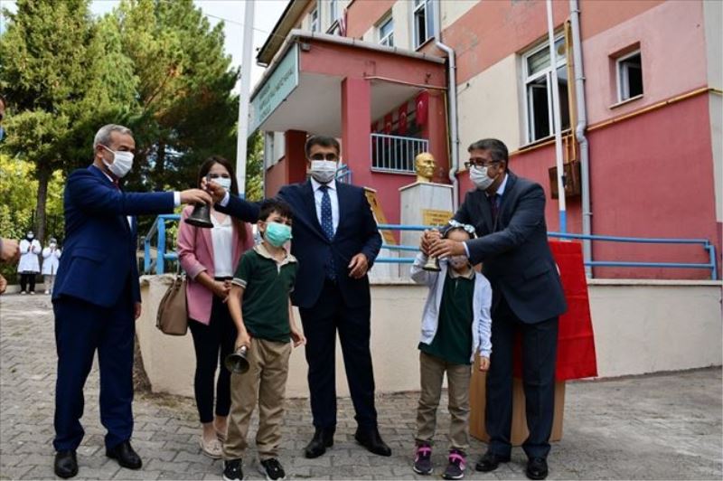 Vali Fuat Gürel, İl Milli Eğitim Müdürü Nevzat Akbaş, öğrenciler ve öğretmenler ile birlikte ilk ders zilini çalmasının ardından Covid-19 önlemleriyle sınıflarına alınan öğrenciler, yeni eğitim öğretim yılının ilk dersine girdi.
