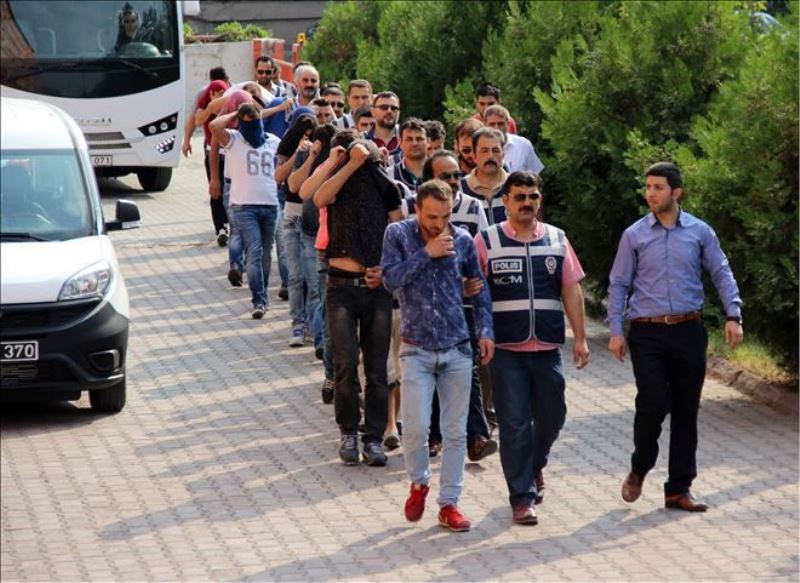 Emniyette sorguları tamamlanan C.Ş. (28), M.C.B. (17), N.S.B. (19), M.G. (26), İ.E. (28), Y.A. (18), İ.B. (31), S.Y. (34), M.G. (25), N.S. (43), B.Ö. (19), E.A. (23), M.S. (24), H.S. (26), F.Ç. (30) A.Ö. (22), Ş.E. (47) ve A.T. (22) isimli şahıslar sabah saatlerinde sağlık kontrolünden geçirildikten sonra Adliyeye sevk edildi.