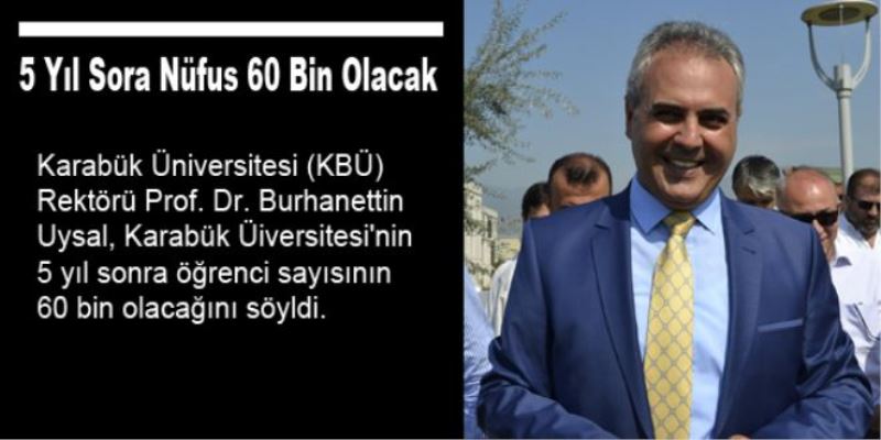 Karabük Üniversitesi (KBÜ) Rektörü Prof. Dr. Burhanettin Uysal, Karabük Üiversitesi`nin 5 yıl sonra öğrenci sayısının 60 bin olacağını söyldi.