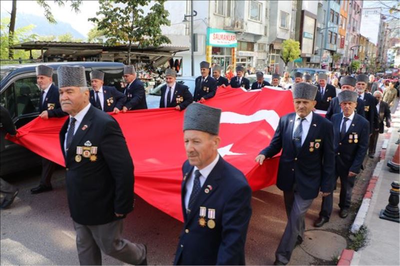 Belediye bandosu eşliğinde yapılan yürüyüşte 7´den 70´e yüzlerce vatandaş ve öğrenci, ellerinde Türk bayraklarıyla yürüdü.