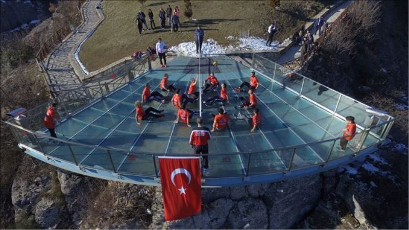 Türkiye Bedensel Engelliler Spor Federasyonu tarafından Karabük´te düzenlenen Oturarak Voleybol 1. Ligi 1. Etap müsabakaları kapsamında sporcular 80 metre yükseklikteki cam teras üzerinde voleybol gösterisi yaptı.