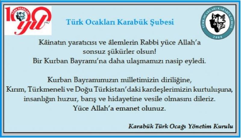 Karabük Türk Ocağı Yönetim Kurulu Kurban Bayramı münasebetiyle bayram mesajı yayınladı.
