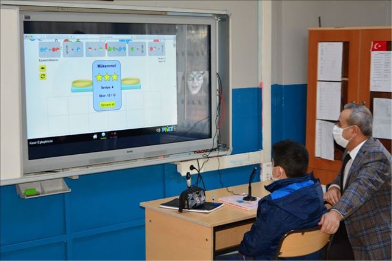 Uzaktan Eğitim veren Fen Bilimleri Öğretmeni Ecevit Bülent Altaş ve Matematik Öğretmeni Berrin Öksüz öğretmenlerin dersine konuk olan Nevzat Akbaş derslerin işleyişi hakkında bilgi aldı ve öğrenciler ile bir süre sohbet etti.