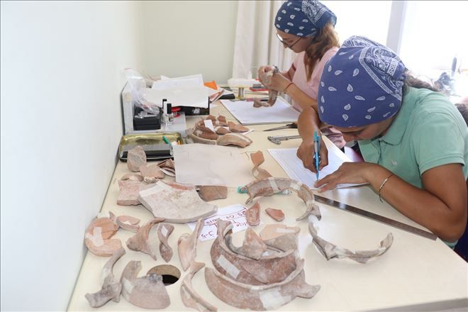 Ağustos ayının sonuna kadar kazı çalışmaların iki alanda devam edeceğini ifade eden Yrd. Doç. Dr.Ersin Çelikbaş, “ Birinci sektörümüz, geçen yılda devam ettiğimiz kilise C olarak adlandırdığımız yapı. Diğeri ise kentin güneyinde yer alan güney Negrepol olarak adlandırdığımız mezar alanı. İki sektör de de önemli bulgularımız var bu yıl ve bu bulguların Hadrianaupolis ve bölge tarihi açısından önem arz ettiğini düşünüyoruz. Öncelikle Kilise C´den bahsedecek olursak, geçen yılki çalışmalarımızla iki evresini tespit etmiştik. Bu tespit ettiğimiz evrelerden hariç Kilise B´ye bitişik farklı fonksiyonlarda kullanılan bölümler ortaya çıkardık. Bunlardan en önemlisi ise bir cam işleyişinin olduğunun düşünüyoruz. Bu kanıya Hadrianapolis´te bizden önceki kazı başkanlıklarının da yaptığı çalışmalarda ortaya çıkan camlar var. Bu camların büyük çoğunluğu mavimsi yeşilimsi bir renk tonuna sahip. Biz her zaman şunu söylüyorduk; bu kadar aynı renkte camın ortaya çıkması acaba bir yerel üretimi akla getirir mi diye düşünüyorduk. Kilise C´nin hemen kuzeydoğu köşesinde bir yapıya bitişik atölye olduğunu tahmin ettiğimiz bir yapıyla karşılaştık ve bunun içerisinde bir ocak kalıntısı var. Duvarlarda çok büyük is izleri var. Zeminde bütün şeklinde kömürlerle karşılaştık. Bu kömürlerden numuneler aldık. İnşallah bunları analize göndereceğiz. Hangi tür odunların burada kullanıldığını yakıt olarak. İlginçtir ki binlerce parça aynı renkte cam eser parçaları ile karşılaştık. Bunların içerisinde erimiş camlar ve cam külçeleri vardı. Biz burada atölye olduğunu tahmin ediyoruz. Tabii ki şuanda verilerimiz kısıtlı. Çünkü atölye olarak düşündüğümüz yerin sadece üçte birlik kısmını bu yıl kazabildik. Gelecek yıl oradaki çalışmalarımıza devam edeceğiz. Bunu tarihi açıdan da şöyle belirtebiliriz. Kilisenin iki evresi var dedik. Birincisi evresi M.S. 5.yüzyıl, ikinci evresi M.S 6. Yüzyıl. Dolayısı ile bu cam atölyesi kilisenin bir bölümünün kullanılarak yapılmış olmasından dolayı kilise fonksiyonunu kaybettikten sonra buraya yapılmış olması gerekiyor. Dolayısı ile cam atölyesinin M.S. 6. Yüzyıl sonları ve 7. Yüzyılın ortalarına kadar faaliyet gösterdiğini düşünüyoruz. Diğer bir nokta ise kiliseye bitişik şuanda henüz fonksiyonunu belirleyemediğimiz bir Roma dönemi yapısıyla karşılaşmamız oldu. Daire plana sahip, bunun ne olduğuna dair tabi farklı yorumlar yapabiliyoruz. Fakat daha çok başındayız. Tholos planına benziyor. Şunu kesinlikle söyleyebilirim ki bu bir Roma yapısı. Kilise yapısı gibi geç Roma erken Bizans yapısı değil. Daha erken dönemlere ait bir yapı. Bu yapılara ait çalışmaları gelecek yıl da devam edeceğiz. Bölümlerini açtıkça bu yapının fonksiyonu ve işlevi hakkında daha net bilgilere uluşacağımızı düşünüyorum” dedi.