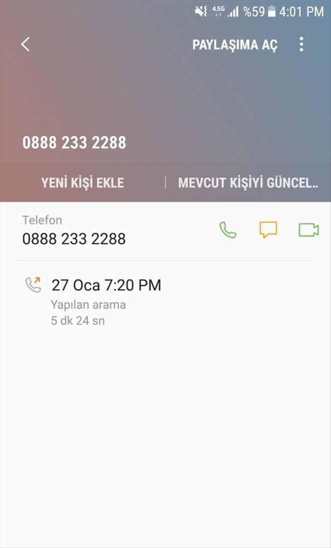 Edinilen bilgiye göre, Avusturya´nın Viyana şehrinden ülkeye dönüş yapan Şeref Atasever, burada oto yıkama dükkanı açtı. Aracının muayenesinin bitmesi üzerine muayene için randevu almak isteyen Atasever, internete “TÜVTÜRK araç muayenesi randevusu” yazarak karşısına çıkan ilk sayfayı tıkladı. Araç muayene randevusu için verilen 0800´lü numarayı arayan Atasever, randevu talebi oluşturmak için 6-7 dakika operatörle konuştu. Randevusunu tamamladıktan sonra telefonu kapatan Atasever, telefonuna gelen mesajla şok oldu. Operatör servisinden gelen mesajda faturasının 251.77 TL olduğunu gören ve faturasının 100 lira olduğunu bilen Atasever, randevu kaydı oluşturmak için konuşurken yaklaşık 150 lira dolandırıldığını anladı.