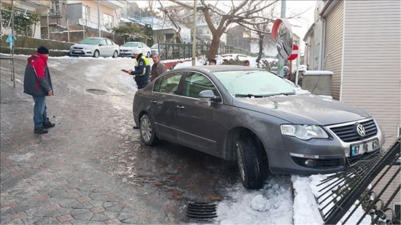 Hatice Erdem Mesleki ve Teknik Anadolu Lisesi yanındaki yolda kaymaya başlayan otomobil bariyerlere çarparak durabildi. Buzlu yolda okula gitmeye çalışan 5 öğrenci de düşerek hafifi şekilde yaralandı.