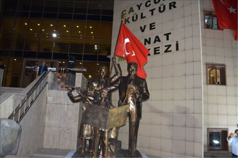 Yapımı Heykel Devlet Sanatçısı Prof. Dr. Tankut Öktem heykel atölyesinde, Tankut Öktem´in kızı Yüksek Mimar Heykeltıraş Pınar Öktem Doğan tarafından üstlenildi. Çaycuma Kültür Sanat Merkezi´nde gerçekleşen açılışa, Zonguldak Valisi Ahmet Çınar, Çaycuma Kaymakamı Serkan Keçeli, İlçe Belediye Başkanı Bülent Kantarcı, Çaycuma İlçe Jandarma Komutan Vekili Kıdemli Başçavuş Murat Balkaş, Zonguldak Emniyet Müdürü Ahmet Metin Turanlı, Çaycuma Askerlik Şubesi Başkanı Asteğmen Mükerrem Yusufoğlu, Zonguldak Belediye Başkanı Muharrem Akdemir, İl Kültür Müdürü Vekili Hayrettin Şahin, İlçe Milli Eğitim Müdürü İsmail Baş, İlçe Emniyet Müdürü Ahmet Kılıç, Türkiye Emekliler Derneği Çaycuma Şubesi Başkanı Nizamettin Eyidoğan, ADD İlçe Başkanı Zeki Saim Oral, Çaycuma ve Çevre Köylerini Kalkındırma ve Güzelleştirme Derneği Başkanı Savaş Çiloğlu, Almanya Çaycumalılar Derneği Başkanı Şenol Alagöz, siyasi partililer, daire amirleri, sivil toplum kuruluşları ve çok sayıda vatandaş katıldı.