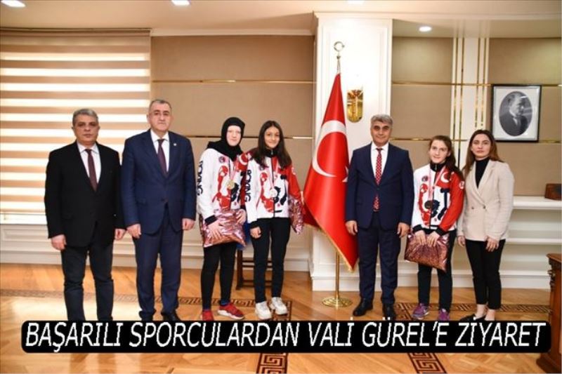 Gençlik ve Spor İl Müdürü Abdulkadir Çetin, Şube Müdürü Lokman Mollaoğulları ve antrenörler Merve Özge Arslan ile Hüseyin Gedik´in de hazır bulunduğu ziyarette sporcuları çeşitli hediyeler ile ödüllendiren Vali Gürel, sporcular ve antrenörler ile birlikte hatıra fotoğrafı çektirdi.