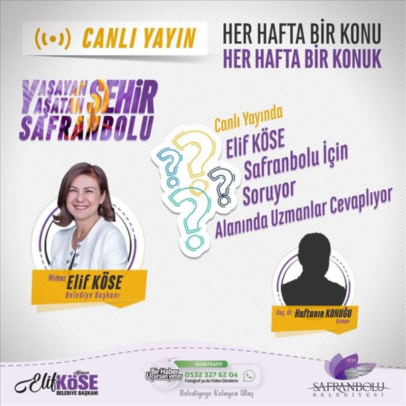 Köse, Safranbolu Belediyesi´nin sosyal medya hesabı üzerinden canlı yayında her hafta farklı konu ve uzman konukların yer aldığı programda araştıran, geliştiren öğrenen bir Safranbolu için sorular soracak.