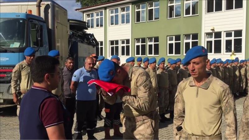 Kaymakam Pendik, jandarma komandoları Türk bayrağı hediye ederek uğurladı.