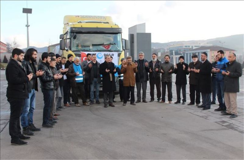İnsani yardım malzemelerini taşıyan tır, dualar eşliğinde yola çıktı.