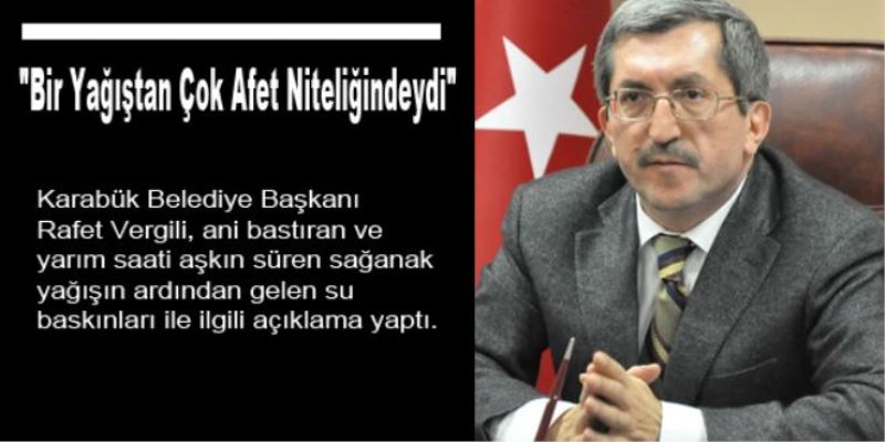Karabük Belediye Başkanı Rafet Vergili, kendisinin de aracı ile su baskınına maruz kalmasını eleştirel haber yapılmasına tepki gösterdi. 'Bu bir yağış değil, felakettir. Felaket üzerinden siyaset ve eleştiri yapmak ise şahsiyetli, onurlu insanlara yakışan şeyler değildir. Karabük küçük yerdir, kim neyi, neden yapar herkes iyi bilir!' diyen Başkan Vergili, 'Akşam saatlerinde başlayan yoğun yağış ülkemizin birçok yöresini olduğu gibi şehrimizi de kısa sürede etkisi altına aldı. Kısa süre, ancak son derece yoğun bir şekilde yağan yağmur, bir yağıştan çok afet niteliğindeydi. Tabi bu gelişmenin ardından bir takım felaket tüccarları da hemen sahneye çıktı ve ortalığı bulandırma çalışmalarına start verdi.