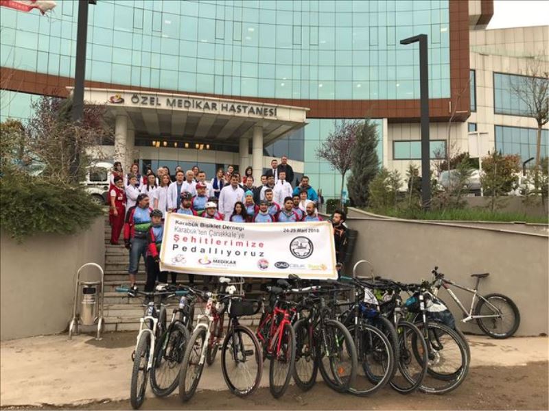 Medikar Hastanesi önünden bisikletleriyle hareket eden bisikletçiler için Karabük Kent Meydanı´nda tören düzenlendi.