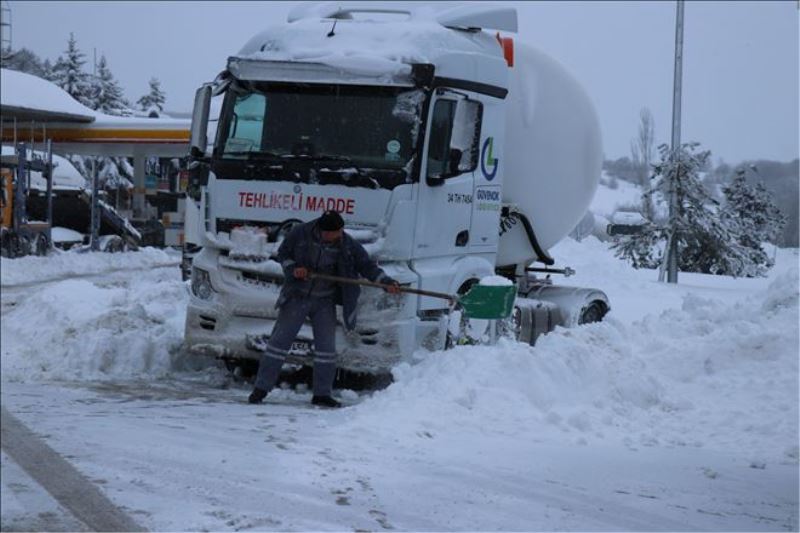 Bolu´da, kar yağışının etkili olduğu D-100 Karayolu Bolu Dağı mevki´inde ağır araçların geçişine 15 saattir izin verilmiyor. Yüzlerce araç hareket etmek için yol kenarlarında bekliyor.