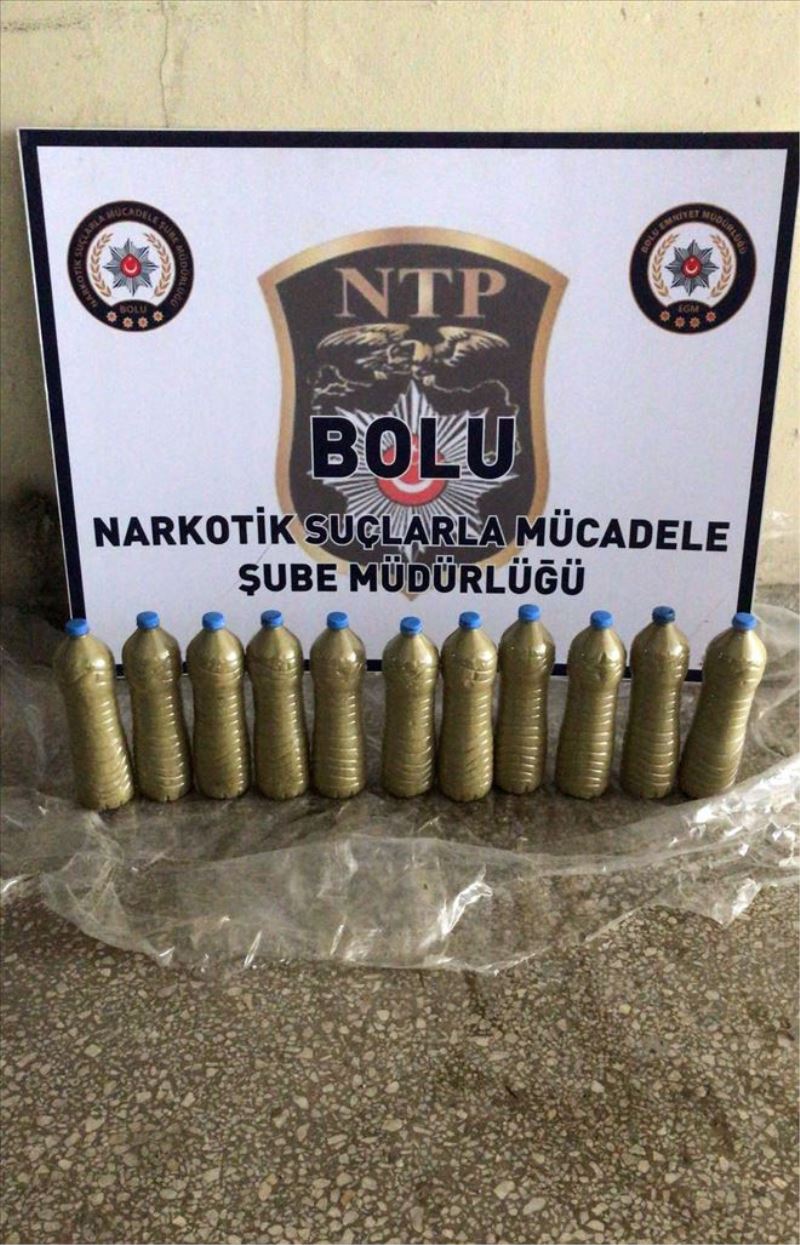 Edinilen bilgiye göre, İl Emniyet Müdürlüğü Narkotik Suçlarla Mücade-le Şube Müdürlüğü ekipleri, TEM Otoyolu üzerinde yapılan uygulama sırasında bir otomobili durdurdu. Otomobilde bulunan M.Ç. ve S.Ç.´nin şüpheli hare-ketleri üzerine araçta Narkotik köpeği ‘Sezar´ ile detaylı arama yapıldı. Aramada otomobilin çeşitli yerlerine gizlenmiş su şi-şelerinin içinde toplam 8 kilo 30 gram toz esrar ele geçirildi. Araçta bulunan ve karı koca oldukları öğrenilen M.Ç. (37) ile eşi S.Ç. (44) gözaltına alındı. İfadeleri alınmak üzere emniyet müdürlüğüne götürülen şahıslar, işlemleri-nin ardından adliyeye sevk edildi.