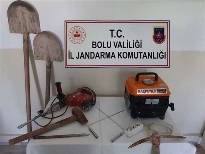 Edinilen bilgiye göre, İl Jandarma Komutanlığı ekipleri Bolu merkezde bulunan ormanlık alanda kaçak kazı yapıldığı ihbarı üzerine operasyon başlattı. Ekiplerin kazı yapılan yere yaptıkları operasyonda 1 adet Osmanlı sikkesi, 1 adet jeneratör, 1 adet hilti, 2 adet define arama aparatı ve kazı malzemeleri ele geçirildi. Kazı yaptıkları sırada suçüstü yakalanan ve aralarında diş hekimi, memur ve eski muhtarın da olduğu 6 kişi, gözaltına alınarak ifadeleri alınmak üzere Jandarma Komutanlığına götürüldü.