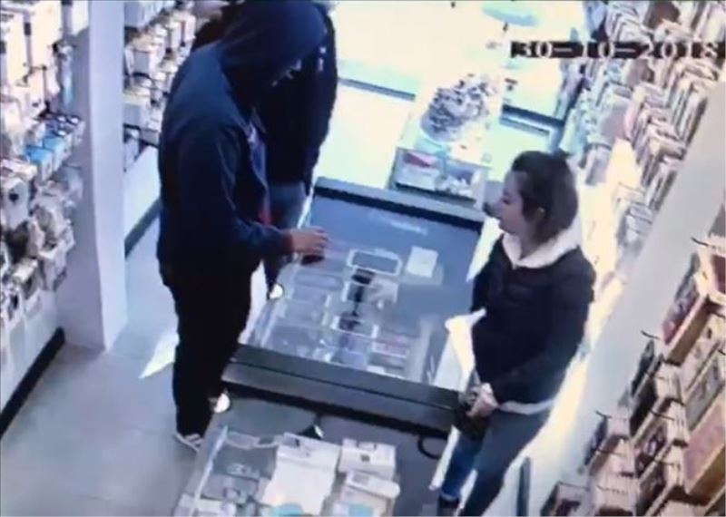 İşyerinin güvenlik kemarasına yansıyan hırsızlık olayında, yabancı uyruklu şahısların iş yerine girdikten sonra incelemek için tezgahtan istedikleri ikinci el cep telefonunu, satıcı tezgahtan ayrıldıktan sonra cebine koyduğu ve yerine başkan bir telefonu tezgaha yerleştirdiği görülüyor.