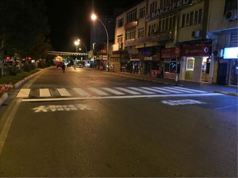 Vardiya usulü çalışan ve gece de çalışmalarına devam eden ekipler yaya geçitleri, asfalt yama, kaldırım yenileme, taş duvar yapımını sürdürüyor.