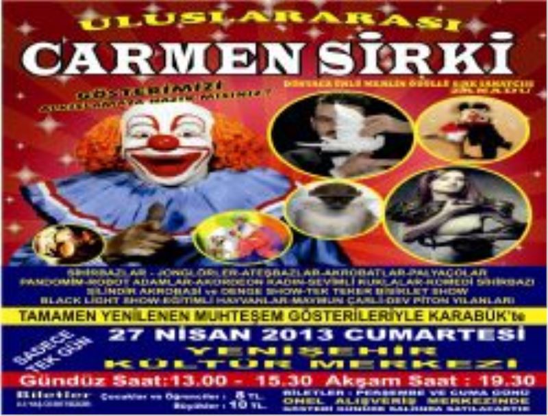 Sirk programı ile ilgili açıklamalarda bulunan Carmen Sirki Sanat Yönetmeni Enver Mutlu, Türkiyede modern sirk sanatlarını Avrupada olduğu gibi kültür markezi salonlarında ve kapalı spor salonlarında sunan ve tiyatral sirk gösterisinin öncülüğünü yapan Carmen sirki dünyaca ünlü sirk sanatçısı zanadu'nun içinde insan bulunan kutuyu uçurması ve havada birini tutması gösterisini hayretle izleyeceksiniz. Robot transformers gösterisine çocuklar bayılacak. Jonklör show, sihirbazlar, akrobatlar, Çin ateş dansı ,sevimli kukla gösterisi, tek teker bisiklet show, silindir denge ve akrobasi show, akordeon kadın, palyaçolar, ateş adamlar, black light poping show, eğitimli hayvanlar, maymun Çarli, dev Piton yılan show gibi değişik gösteriler yer alacak. Bu gösteriyi hayatınız boyunca unutamayacaksınız. Ödül kazanmış sanatçı kadrosu ile muhteşem sirk gösterisine Karabük'te yaşayan tüm çocuklarımızı ve halkımızı davet ediyoruz. İsteyenler sanatçılarla yılanla maymunla ve diğer hayvanlarla fotoğraf çektirebilecekler dedi.