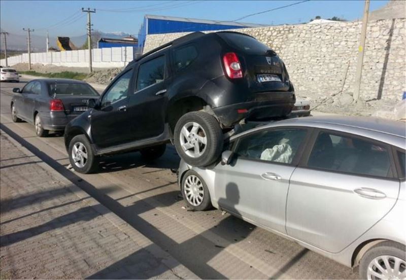 Kaza, Şehit Ateşe Reşat Moralı Bulvarı´nda meydana geldi. Ersin Poyraz yönetimindeki 78 BY 579 plakalı otomobile, sürücüsü trafik yoğunluğu nedeniyle yavaşlayınca, arkadan gelen Dursun Ayvazpınarı´nın kullandığı 78 SP 017 plakalı cip çarptı. Cipe de arkadan gelen Nuray Dursun yönetimindeki 78 AN 995 plakalı otomobil çarptı. Dursun´un otomobilinin ön kısmı cipin altına girdi. Cip, otomobilin üzerinden çekici yardımıyla indirildi. Ölen ve yaralananın olmadığı kazada araçlar çekici yardımı ile kaldırıldı.