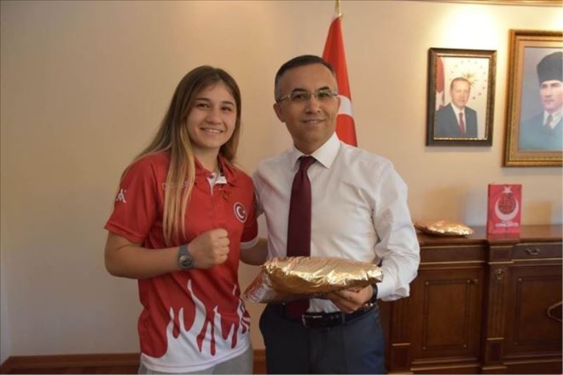 07-10 Temmuz 2017 tarihleri arasında Bulgaristan´ın Sofya kentinde yapılan Genç Bayanlar Avrupa Boks Şampiyonasında ülkemizi 60 kg´da temsil ederek Avrupa İkincisi olan milli sporcumuz Çağla Aluç´u kutlayan Vali Çeber, “Bu başarıyı elde eden genç sporcu kızımızı, onu hazırlayan antrenörünü, sporcumuzun ailesini ve Gençlik Hizmetleri İl Müdürlüğümüzü gösterdikleri başarıdan dolayı kutluyorum, başarılarının devamını diliyorum.” dedi.