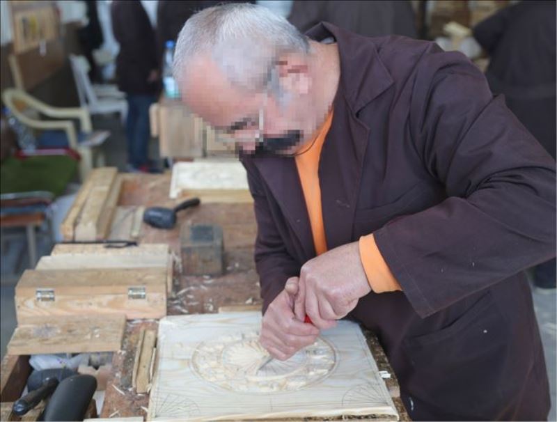 Cezaevine gelen hükümlülerin herhangi bir meslek sahibi olmadığını ve açtıkları kurslarda meslek edindiklerini sözlerine ekleyen Çalışkan, '45 hükümlümüz tabii ki bu mesleği dışarıdan öğrenerek gelmiş değillerdir. Tamamen bizim burada açmış olduğumuz kurslardan öğrenerek usta öğreticilerin öğretmesiyle kazanmışlardır. Biz buradaki ürünlerimizde çoğu zaman Osmanlı ve Selçuklu motiflerini işlemekteyiz. Tabii bu motifleri işlerken kişi ve şahıslar biraz öncede bahsettim kendi özel talepleri olduğu zaman isimlik bazında işte spor kulüplerinin sembollerini işleyerek veyahut herhangi bir kabartma resmine çıkartarak tamamen desinatörlerimiz ve çizicilerimiz tarafından şekiller oluşturulmakta ve işleyici, oymacı arkadaşların da tamamen el emeği göz nuru ile bu işler çıkarılmaktadır ve pazarlanmaktadır. Bundan da iş yurtlarımız gelir elde etmektedir' ifadelerini kullandı.