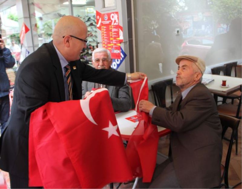 CHP Karabük İl Başkanı Bayram Karadağ ve yönetimi istasyon caddesinden başlayarak esnaf ve vatandaşlara Türk bayrağı dağıttı.