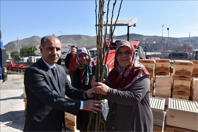 Konuşmaların ardından meyve fidanları ve arısız kovanlar Vali Mehmet Aktaş ve protokol üyeleri tarafından çiftçilere teslim edildi.