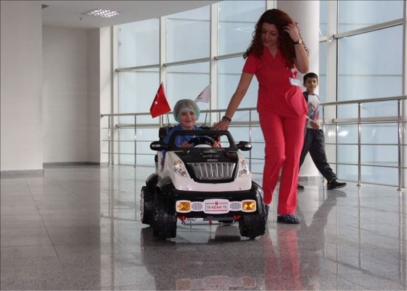 İlk etapta alınan 2 akülü oyuncak araba çocuk hastaların hizmetine sunuldu. Çocuklar, duvarlarında çizgi film kahramanlarının fotoğrafları bulunan çocuk servisinden ameliyathaneye sedye veya tekerlekli sandalye yerine oyuncak arabalarla götürülüyor.