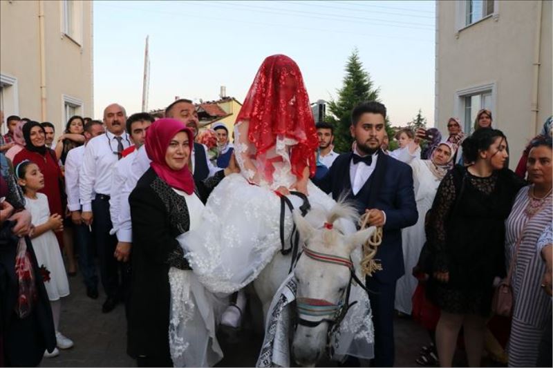 Safranbolu ilçesinde yaşayan Batuhan Özdemir kız arkadaşı Cansel Bakal ile hayatını birleştirme kararı aldı. Damat Özdemir´in babası Hüsnü Özdemir, düğünde gelinini baba ocağından araç yerine ata bindirerek çıkarmak istediğini söyledi. Babasının isteğini kırmayan Batuhan Özdemir Esentepe Mahallesi´ndeki evinden atına binerek, davul zurna eşliğinde gelini almaya gitti. Gelin Cansel Bakal´ı baba ocağından dualarla çıkaran damat, eşini ata bindirdikten sonra evlerinin önüne kadar götürdü. Vatandaşlar da cep telefonları ile bol bol video ve fotoğraf çekti.