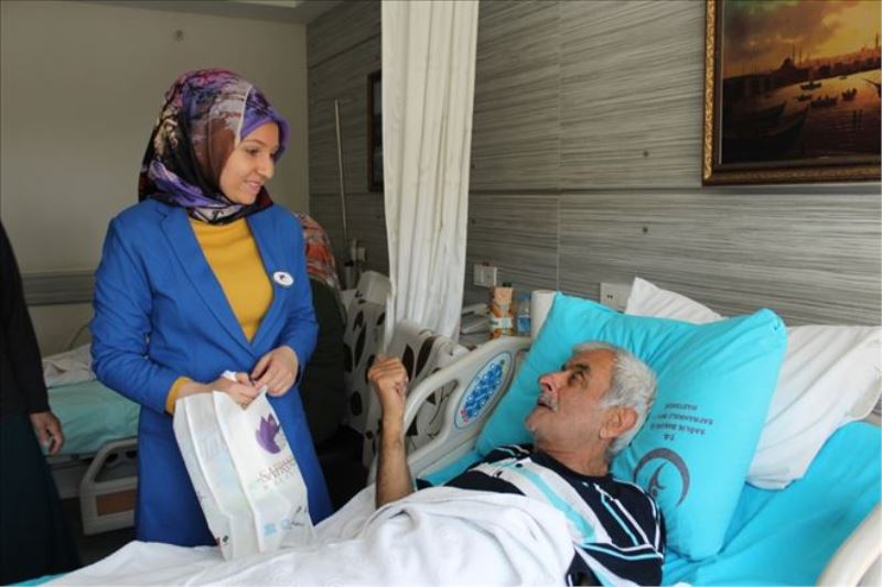 Kültür ve Sosyal İşler Müdürlüğü ekipleri ziyaret esnasında hastalara, hastanede ihtiyaç duyulabilecekleri bazı hediyeleri de yanlarında götürüyor.