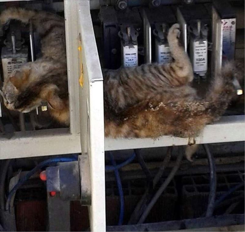 Mermer Mahallesi´nde dün gece sokak lambalarının sönmesi üzerine birçok kişi elektrik dağıtım şirketini arayarak durumu bildirdi. Ekipler, sabah arızayı gidermek için mahalleye geldi. Elektrik panosunun kapağını açan ekipler, telef olan kediyle karşılaştı. Kedinin, panonun alt tarafındaki delikten içeriye girdiği ve akıma kapılarak telef olduğu, elektrik arızasının da bu yüzden oluştuğu belirlendi. Telef olan kedi panodan çıkarıldıktan sonra arıza kısa sürede tamir edildi.