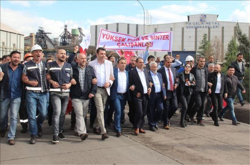 Genel Başkan Değirmenci daha sonra işçilere karanfil atarak işçilerle birlikte temsilcilik binasına kadar yürüdü.