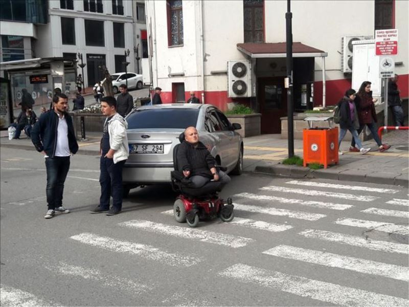 Kdz. Ereğli ilçesinde yaşayan fiziksel engelli Mevlit Dilaver akülü arabası ile yolun karşısına geçti ancak, kaldırıma çıkamadı. Yaya geçidine park eden 67 SF 294 plakalı otomobilin engelli rampasını da geçişe kapatması fiziksel engelli Mevlit Dilaver´e zor anlar yaşattı. Engelli rampasına hatalı park eden otomobil yüzünden çıkamayan Dilaver yaklaşık 40 dakika bekledi. Polis ve zabıtayı arayıp bilgi verdiğini belirten Dilaver, otomobil kaldırılana kadar bekleyeceğini söyledi. Bir süre sonra olay yerine gelen Kdz. Ereğli ilçe Emniyet Müdürlüğü´ne bağlı trafik ekipleri yaya kaldırımına park eden otomobile 216 TL ceza uyguladı. Trafik polisleri cezanın ardından hatalı park yapan otomobili çekici yaya geçidinden kaldırarak fiziksel engelli Mevlid Dilaver´in yolunu açtı. Otomobil belediye otoparkına çekilirken, Dilaver ise kendisine yardımcı olan polislere teşekkür etti.