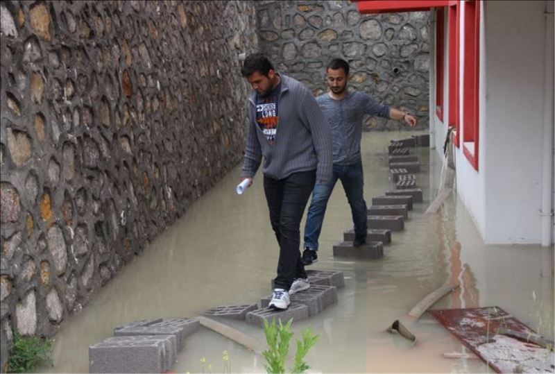 Gece yarısı etkili olan ve metrekareye 20.3 kilogram yağışın düştüğü Karabük´te etkili olan yağmur sonrası 75. Yıl Mahallesi 114. Sokak´ta bulunan İkra Apartmanını su bastı. Zemin katta bulunan bazı evlere kadar su girerken, apartmanın girişi de yaklaşık yarım metre su ile dolunca apartman sakinleri mahsur kaldı. Sabah evlerinden çıkıp işe gitmek isteyen vatandaşlar su ile dolan apartman girişinden dışarı çıkamayınca, koydukları tuğlalarla sorunlarına çare buldu. Evleri su altında kalan, Karabük Üniversitesi öğrencilerinden Onur Erdil, evde 3 arkadaş olarak kaldıklarını söyleyerek, “Geçtiğimiz günlerde yine aynı sorun yaşandı. Dün akşam yine su bastı. Her yağan yağmurda aynı sıkıntıyı yaşıyoruz. Eşyalarımız tamamen su altında kaldı. Şu an diğer arkadaşlarımızın yanında kalıyoruz” dedi.