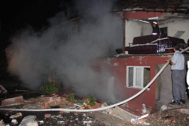 Edinilen bilgiye göre, Karabük Köyü Mahallesi’nde İstanbul’dan yakınlarının düğünü için Karabük’e gelen Makbule Uludağ, kayınbabası Güngör Uludağ’a ait evin üst katında oğlu ile birlikte geldi. Evin mutfağında bulunan tüp büyük bir gürültüyle patlarken, patlamayla birlikte evin duvarları yıkılırken, yangın çıktı. Çevredeki mahalle sakinleri itfaiye ve ambulansa haber verirken, olay yerine gelen itfaiye ekipleri yangına müdahale etti. Makbule Uludağ ve oğlu Emirhan ambulanslarla Karabük Eğitim ve Araştırma Hastanesine kaldırıldı. İtfaiye ekipleri alevleri söndürürken, evde soğutma çalışması yaptı.