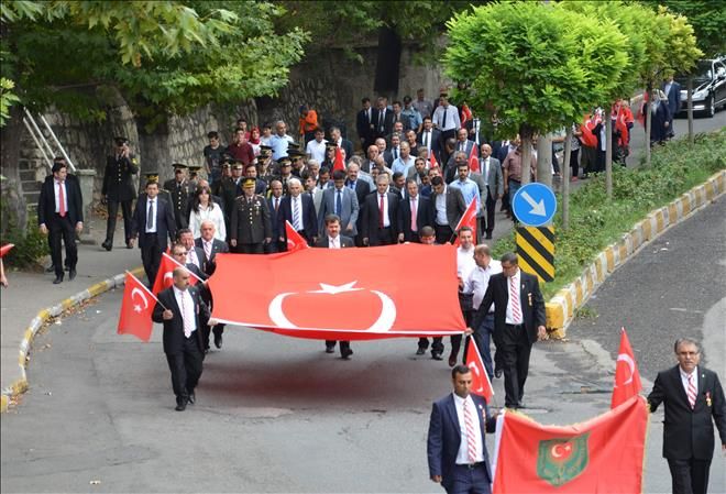 Tören Muharip Gaziler Derneği ve Türkiye Harp Malulü Şehit Dul ve Yetimleri Derneği tarafından Atatürk Anıtına çelenk sunumu ile başladı. Saygı Duruşu ve İstiklal Marşının okunmasının ardından günün anlam ve önemini belirten şiirler okundu.