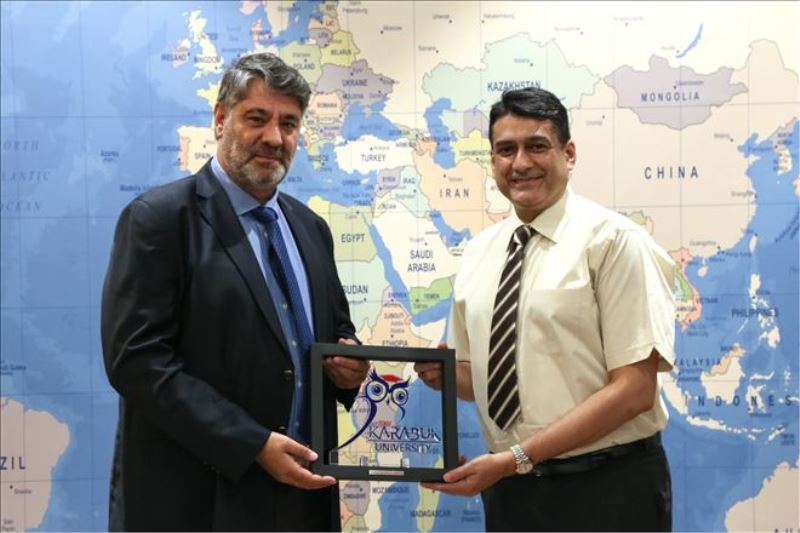 Karabük Üniversitesi Fen Fakültesi Öğretim Üyesi Doç. Dr. Necla Çakmak ve Uluslararası İlişkiler Koordinatörlüğünden Öğr. Gör. Adnan Ucur´un da eşlik ettiği görüşme plaket takdiminin ardından sona erdi.