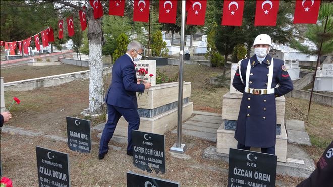 Şehitlikteki tören protokol üyelerinin şehitlerin mezarlarına karanfil bırakması ile sona erdi