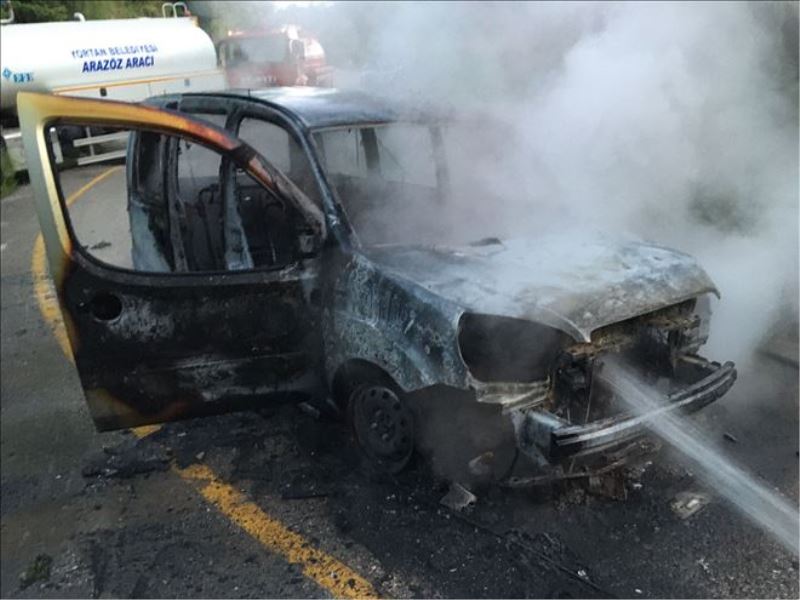 Alevlerin sardığı araç tamamen yanarak kullanılmaz hale gelirken olayla ilgili inceleme başlatıldı.