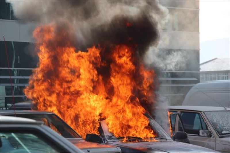 Karabük Eğitim ve Araştırma Hastanesi´nin açık otoparkında park halindeki bir otomobil yandı. Yanan otomobildeki alevler, yandaki araçlara da sıçradı.
