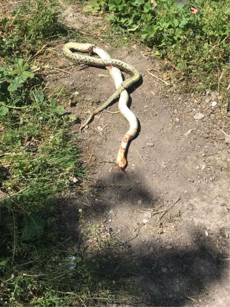 Öte yandan yine merkeze bağlı Bolkuş köyünde ineklerin bulunduğu ahıra giren yılan, vatandaşlar tarafından öldürüldü.