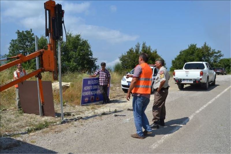 Kastamonu´nun Cide ilçesinde Jandarma Trafik Timi, emniyet kemerinin önemine dikkat çekmek için bağlantı yolları üzerinde “Bu ilçede herkes emniyet kemeri kuşanıyor” yazılı tabelalar dikti. Cide´nin Kurucaşile, Doğanyurt ve Kastamonu yolları üzerinde çift yönlü olarak konuşlandırılan tabelalarla emniyet kemerinin trafikteki önemi vurgulanmak istendi. Cide Jandarma Trafik Timi tarafından bağlantı yolları üzerine dikilen “Bu ilçede herkes emniyet kemeri kuşanıyor” yazılı tabelalar sürücülerin dikkatini çekti.