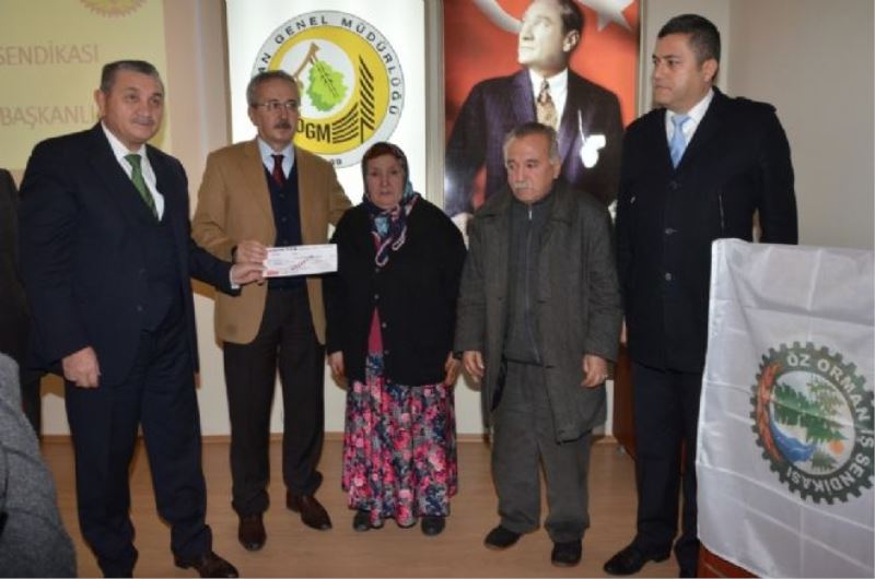 Genel Başkan Aslan ve Zonguldak Orman Bölge Müdürü Ahmet Sırrı Beşel tarafından 20 bin TL’lik sembolik çek Murat Hamarat’ın annesi Türkan ve babası Cafer Hamarat’a teslim edildi.