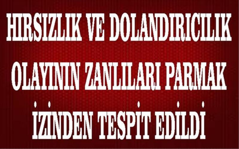 Karabük´te meydana gelen üç farklı dolandırıcılık ve hırsızlık olayları ile ilgili olarak Emniyet Müdürlüğü Olay Yeri İnceleme ve Kimlik Tespit Şube Müdürlüğü ekiplerince yapılan çalışmalarda, olay yerinden alınan parmak izleri Otomatik Parmak İzi ve Avuç İzi Sorgulama Sistemi´nden (APFİS) sorgulanarak, zanlıların S.Y., K.C.B. ve M.K. olduğu tespit edildi.
